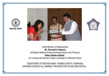 'DAUGHTERS OF MOTHER INDIA' WOMEN SAFETY CAMPAIGN, SHOWING ACROSS ALL MUMBAI THEATERS FOR 20 MILLION PEOPLE.